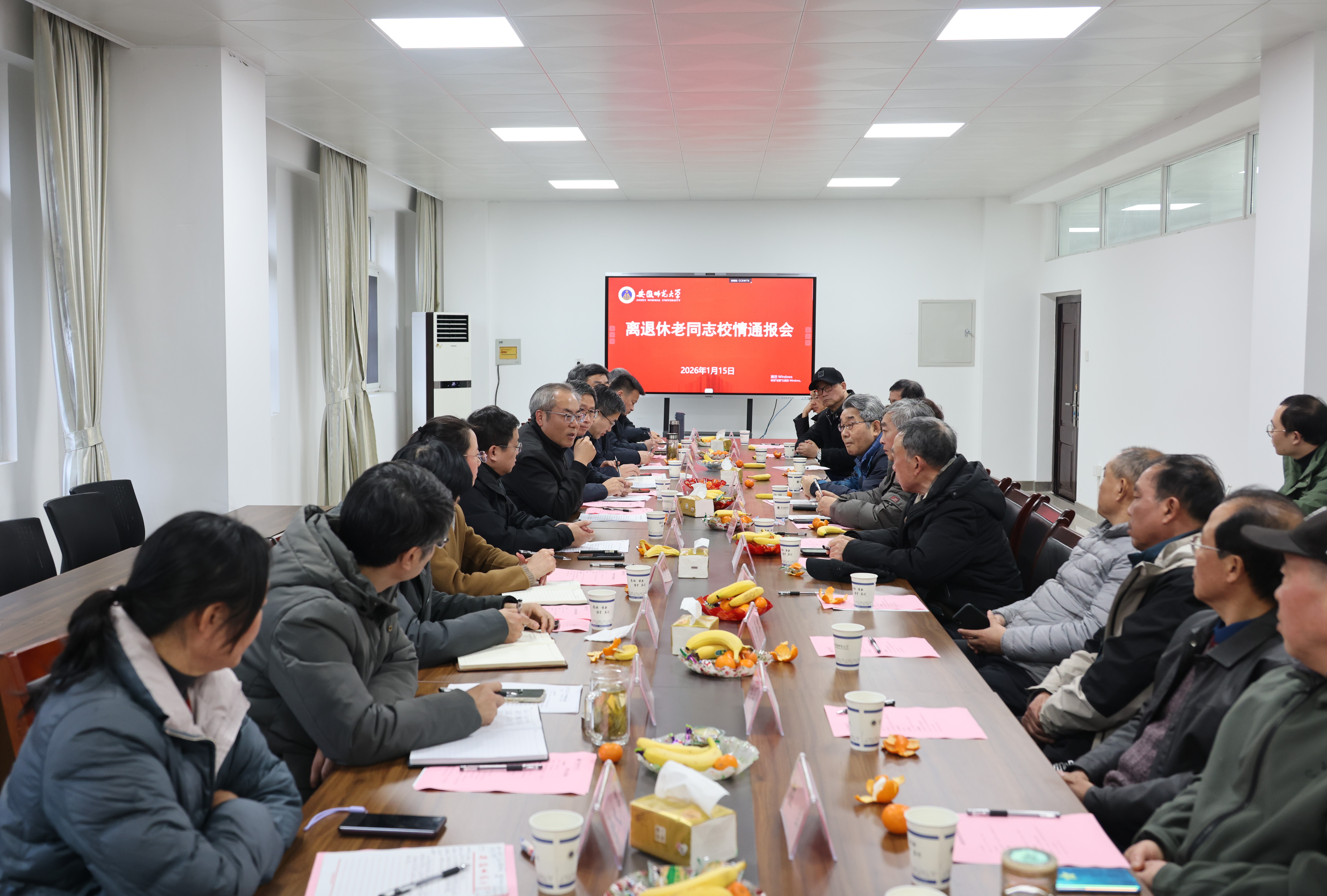 1月15日,学校在赭山校区召开专题会议,向离退休老同志通报学校过去一年的建设发展情况。校党委书记蒋家平,校党委副书记曾黎明,校党委常委、纪委书记、监察专员茆磊出席会议。会议由茆磊主持。
